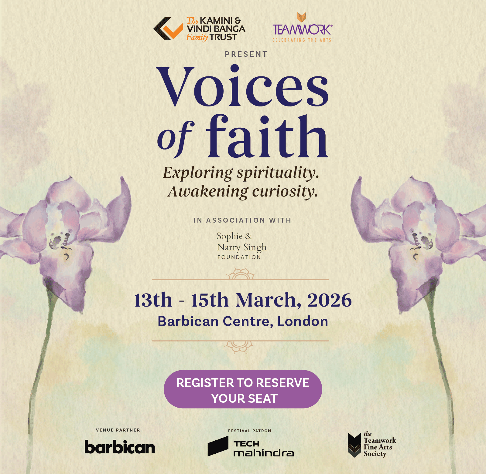 Voices of Faith brings together philosophies that form the basis of religious beliefs, theological texts and spiritual wisdom. Through conversations, insight, music, and foods that heal, we will collectively explore a way towards compassion. Pivoting around the many ancient ideals of goodness that religions have universally originated from, the festival will also underscore their interconnectedness.